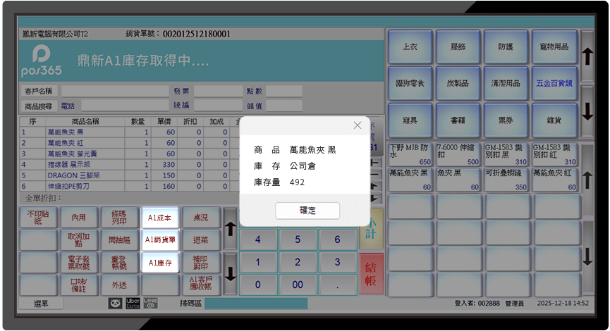 POS與A1串接,跨門市庫存即查即看,補貨、調貨一目了然